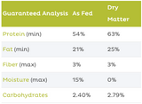 Calorie content (ME Calculated): 109 kcal / oz (3,857 kcal / kg)