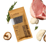 Made with pasture-raised pork, pork liver, pork heart, and a mushroom matrix, it delivers nutrient-dense fuel for hikes, training days, and travel. Built for modern pet parents. We’re on a mission to strengthen the human-canine bond through clean, adventure-ready nutrition.