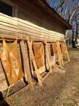 We’re one of the only (possibly THE only) vertically-integrated farm that sells USDA inspected, on-farm butchered meats and sun-dried rawhides. Our rawhides are created from grassfed cattle processed in our on-farm red meat abattoir. Fresh hides are collected daily to be processed for our rawhide chews. Processed by hand, our rawhides are produced without harmful chemicals or bleach and are dehydrated slowly to keep from becoming brittle. Our handmade raw hides are made from our grassfed cattle raised and slaughtered on our farm. We clean the hides, soak in a lye and water bath to help with hair removal, roll by hand, and dry in our customized drying room to provide a unique and highly pleasing Southern treat for your best companions.